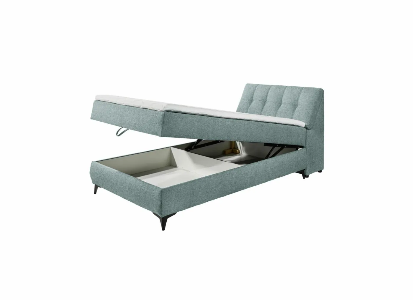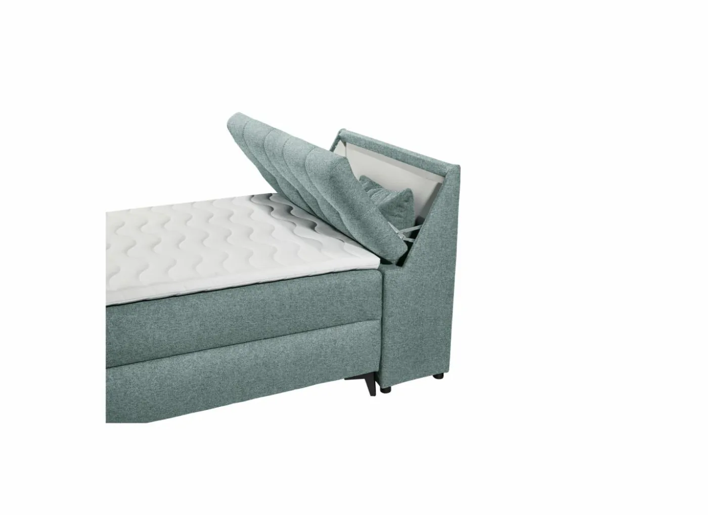 De bedbox heeft 2 opbergruimtes: 1 aan de achterkant onder de matras en 1 aan het hoofdeinde die opengeklapt kunnen worden.