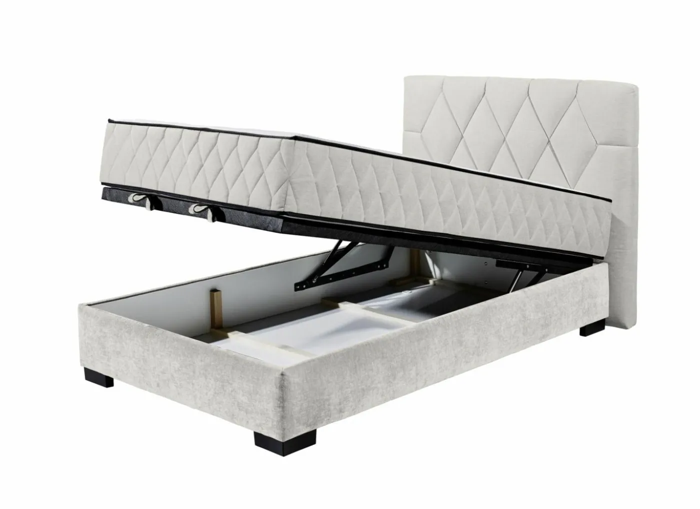 De bedbox heeft 1 opbergruimte, een hoofdbord van 114 cm en een lighoogte van 59 cm.