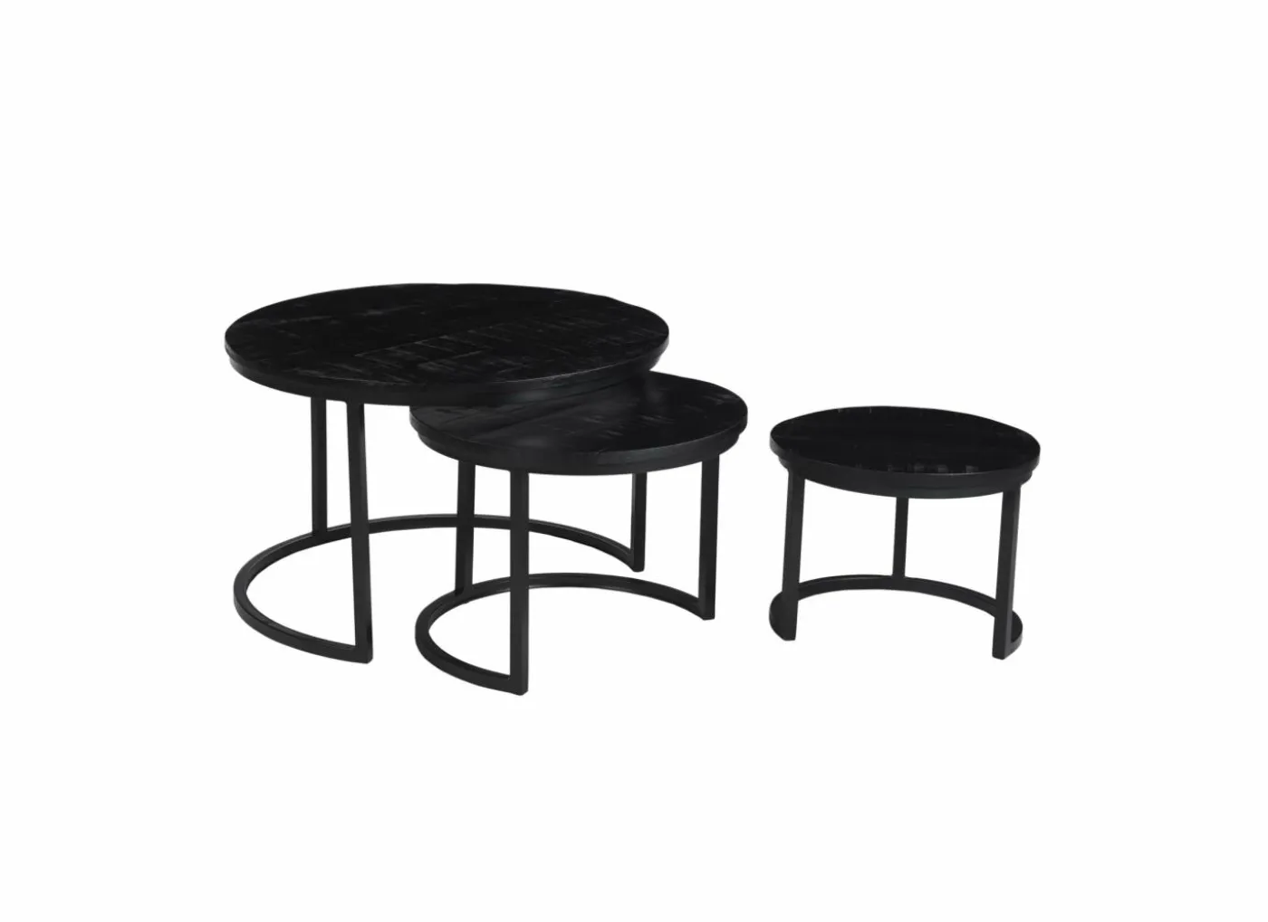 De kleinste bijzettafel heeft een afmeting van Ø40x30cm.