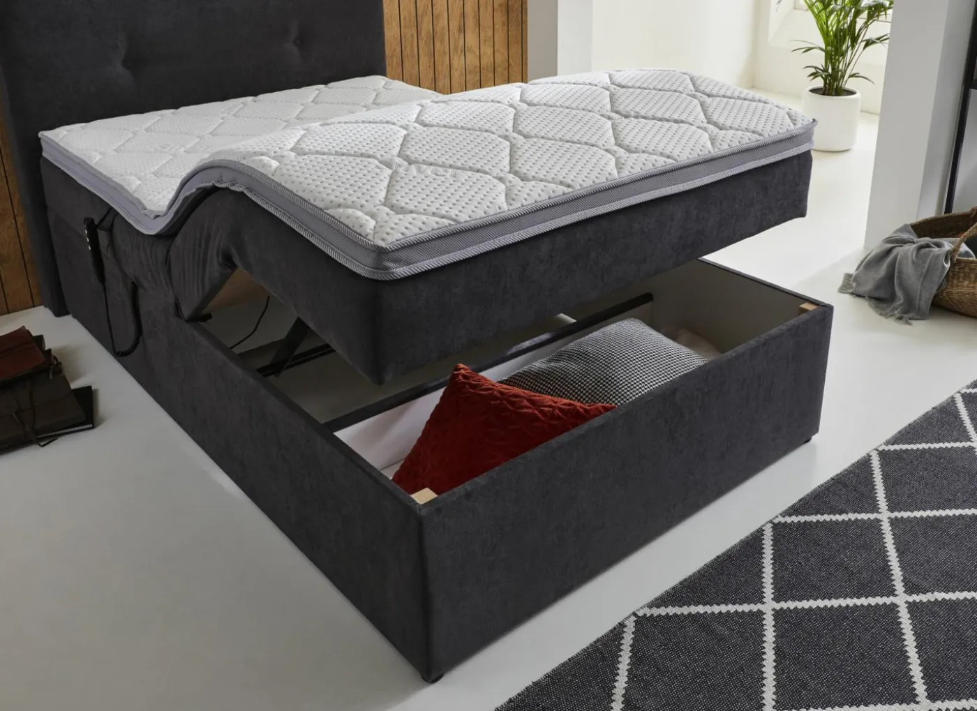 Het hoofd en voetgedeelte is verstelbaar via de elektrische bediening.