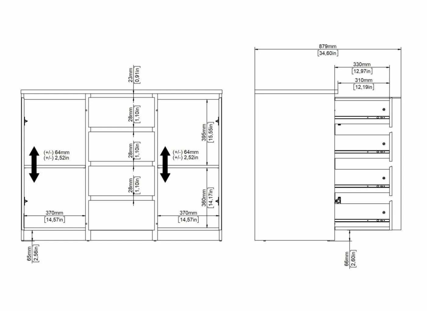 | Materiaal | Meubelplaat afgewerkt met melamine |