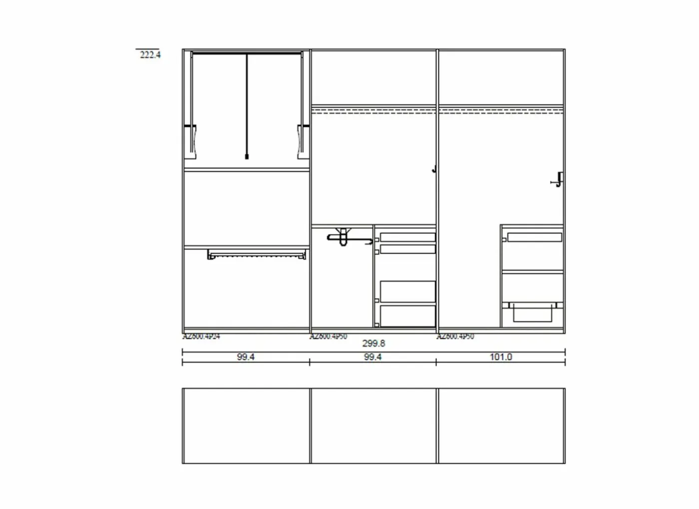 - • Ladeset van 3 lage, uittrekbare lades van telkens 50 cm