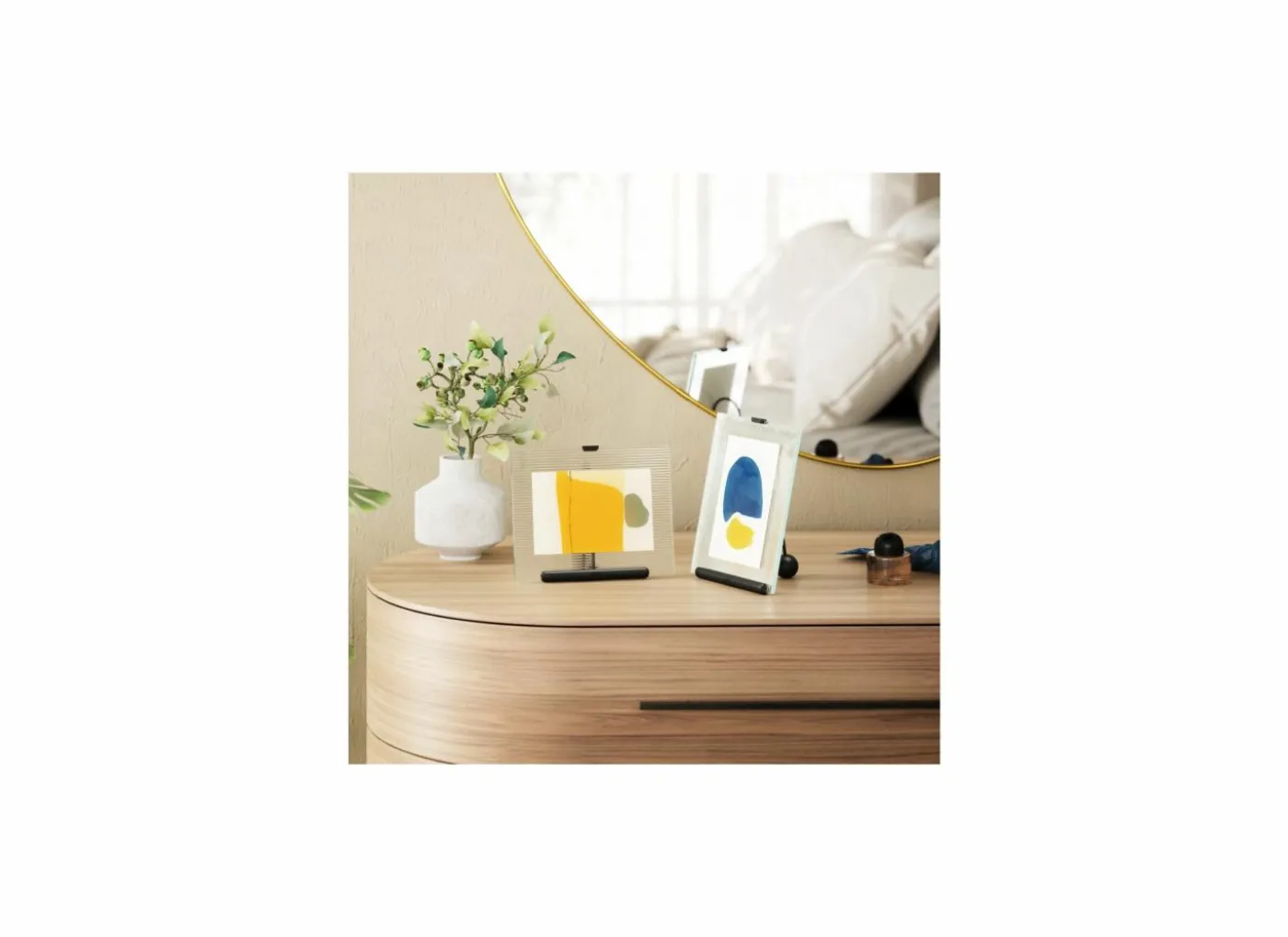 Toon kunstwerken of foto’s verticaal of horizontaal door het glas te draaien.