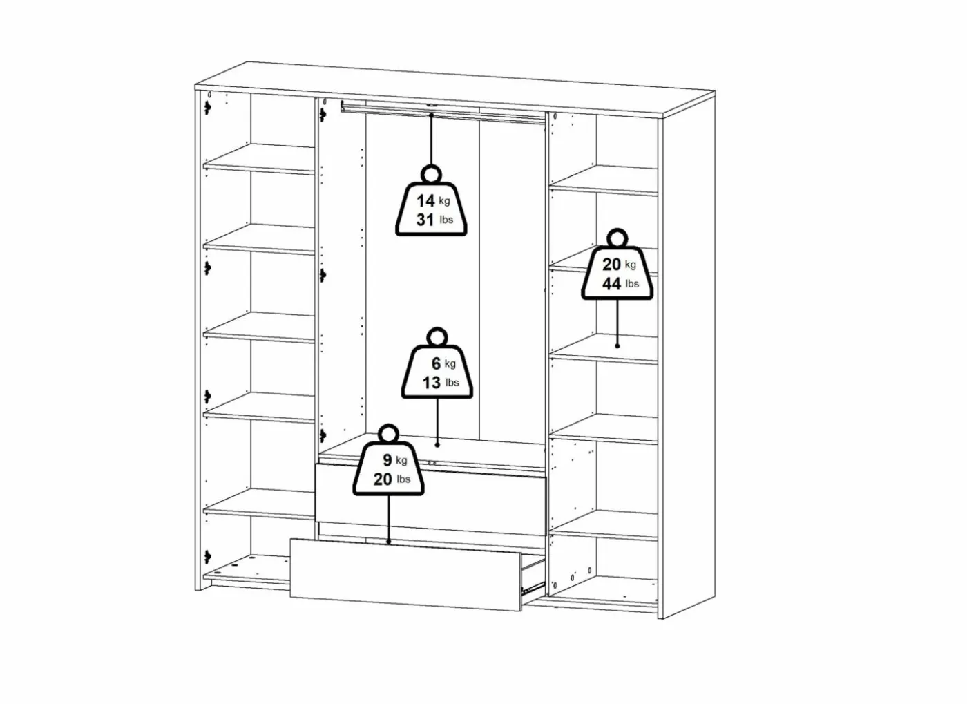 | Materiaal | Meubelplaat afgewerkt met melamine |