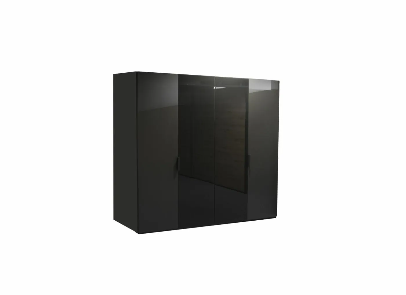 Strakke draaideurkast in grafiet met een stijlvolle afwerking van basaltkleurig glas. De kast is 222 cm hoog en bestaat uit een combinatie van volle en glazen deuren, wat zorgt voor een luxueuze en moderne uitstraling.