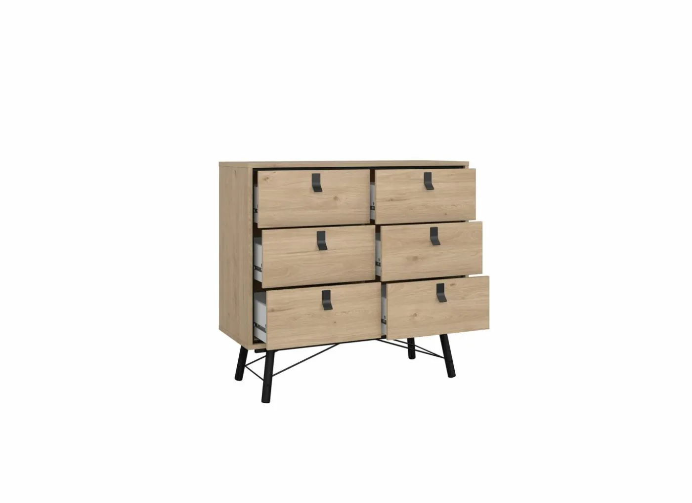 Bed Dalate 160x200cm – decor – kastanje eik & mat zwart met opbergruimte