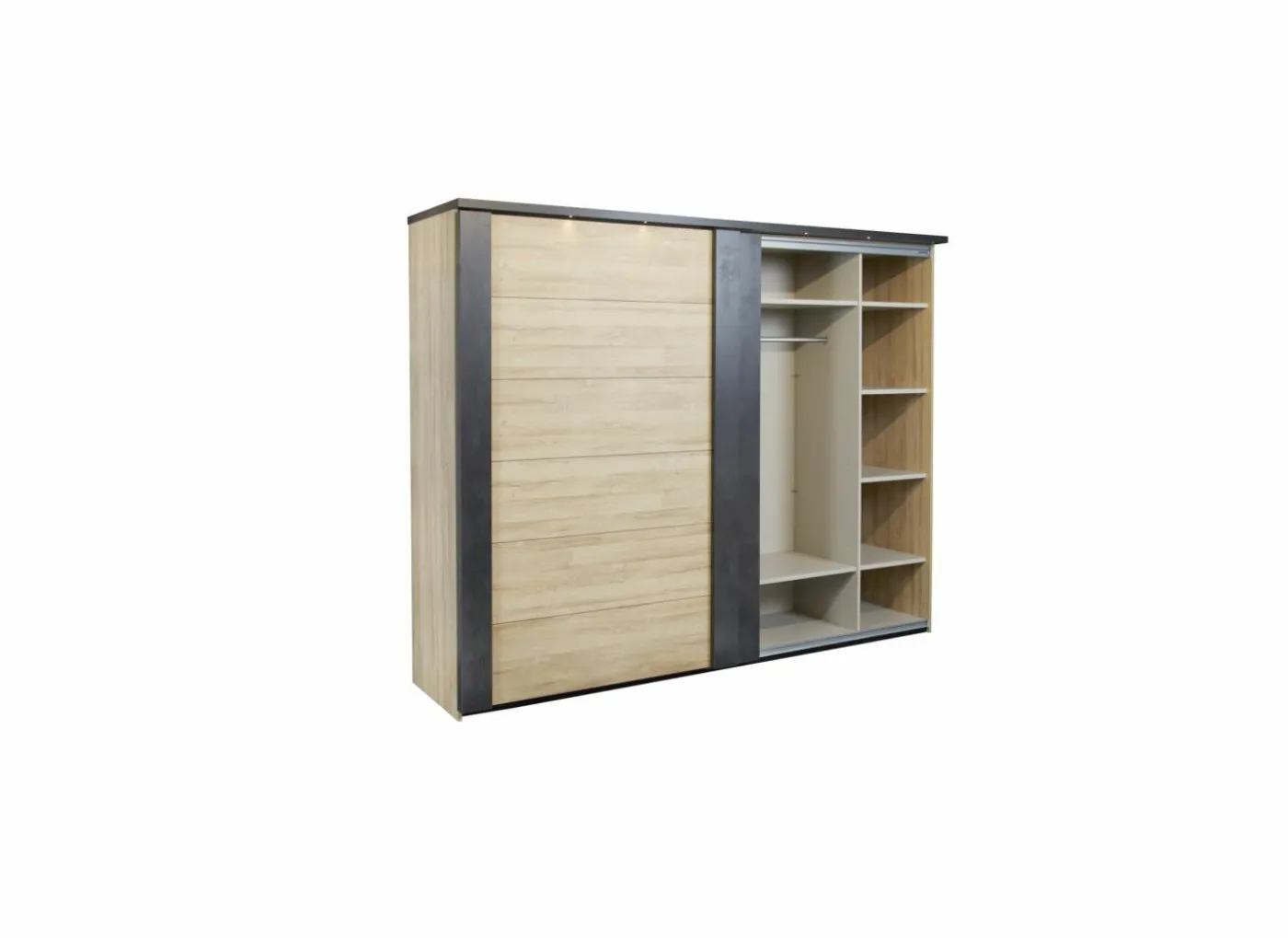 | Kleur | Franse eik + nox (zwarte houtstructuur), grijsspiegel |
