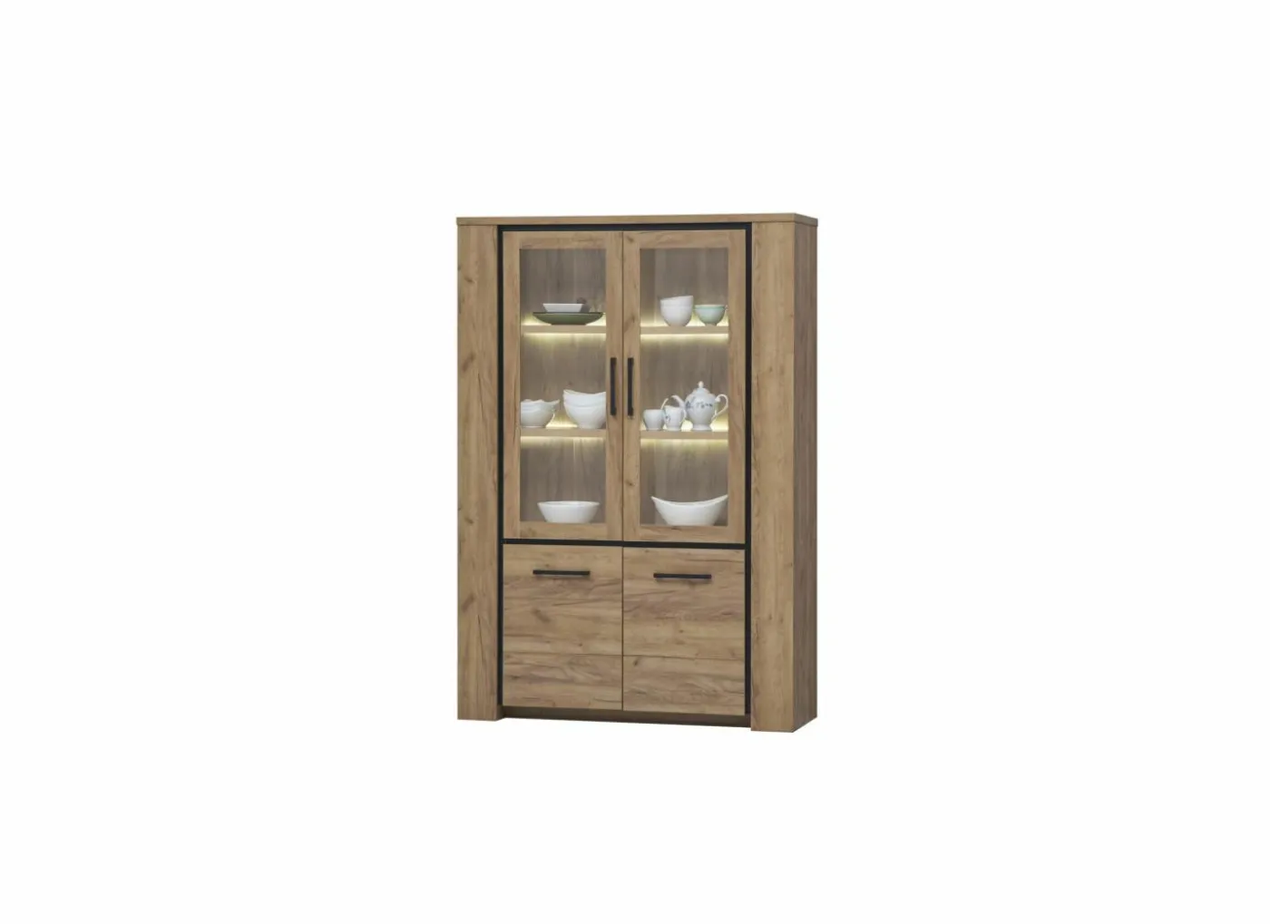 Eetkamer Valencia met 4 stoelen Runner – tafel 210x98cm – vitrinekast 240cm – dressoir 225cm
