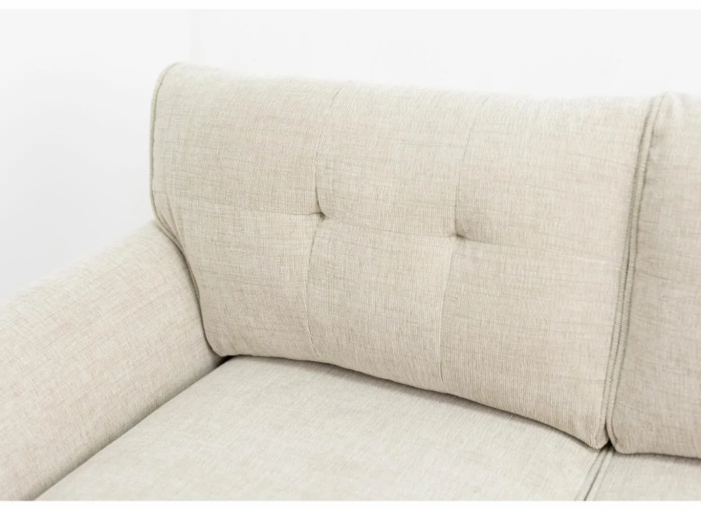 Bekleed met een zachte en duurzame stof in een combinatie van polyester en katoen, komt de sofa tot leven in een elegante beige kleur die rust en harmonie brengt in elk interieur. De afgeronde vormen geven het ontwerp een vriendelijke en toegankelijke look, terwijl het zitcomfort centraal staat.
