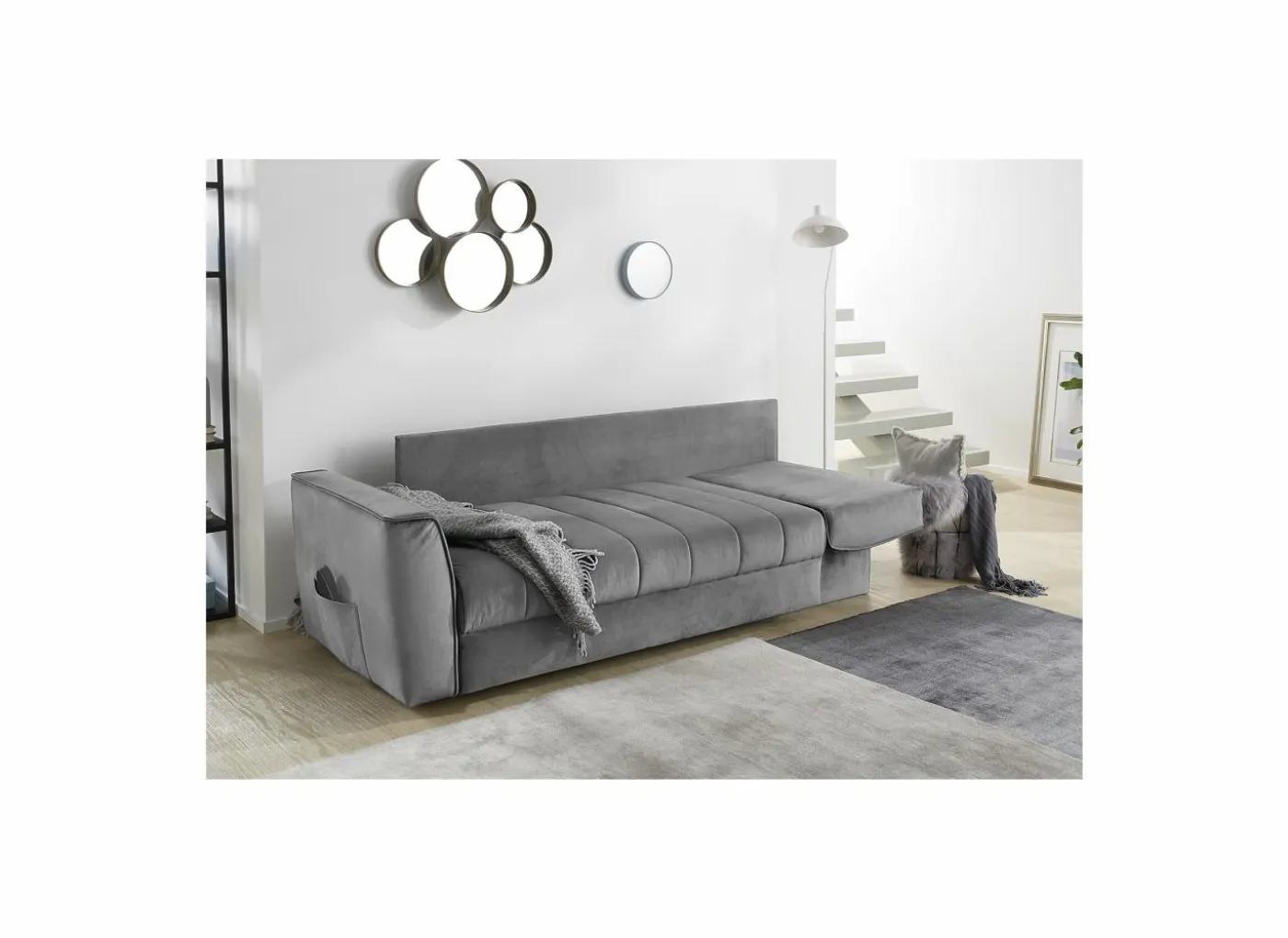 Met de armleuningen naar beneden meet het bed 210cm lang.