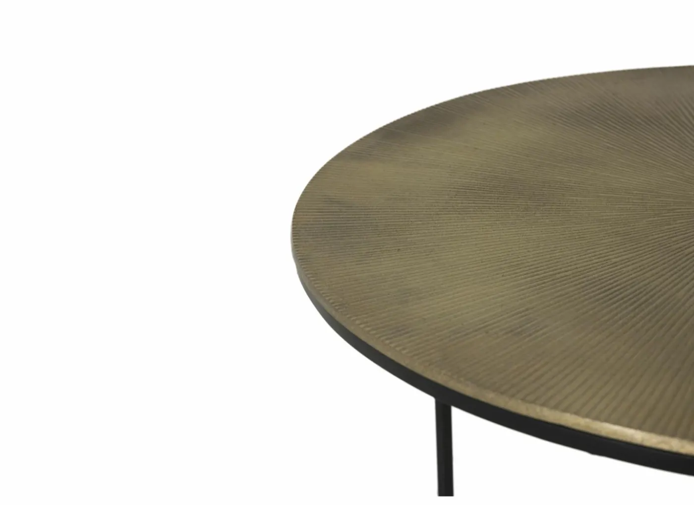 De tafel is gemaakt van metaal dat verschillende bewerkingsprocessen ondergaat om de gewenste kleur en textuur aan het product te geven. De bovenste laag is voorzien van een laklaag die de afwerking beschermt tegen dagelijkse schade of reacties op atmosferische omstandigheden.