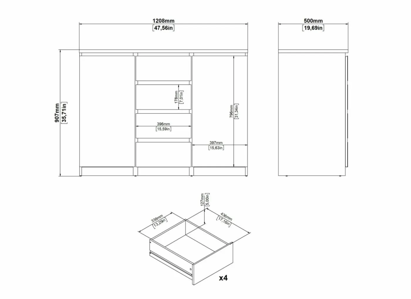 | Materiaal | Meubelplaat afgewerkt met melamine |