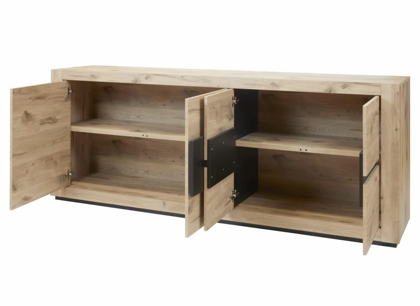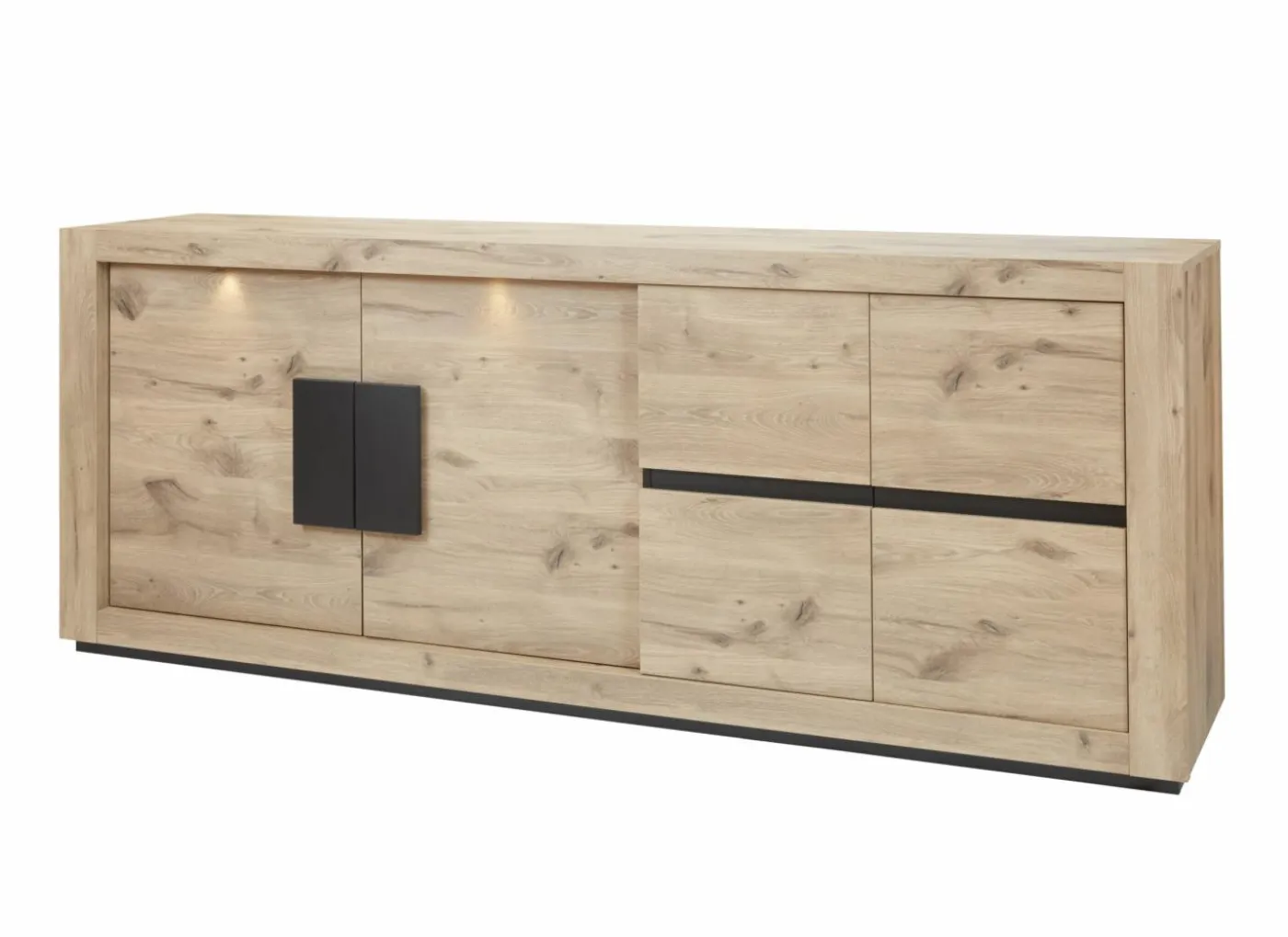 Eetkamer Cronos decor eik met 4 stoelen Crux – tafel 210x100cm – dressoir 218cm – kast 130cm