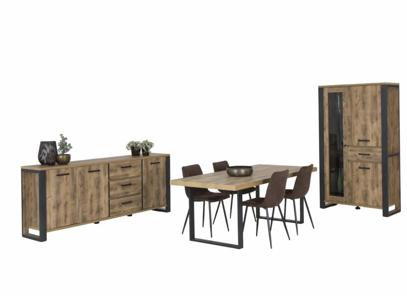 Eetkamer Como 2 met 4 stoelen Epoca beige – tafel 170x95cm – dressoir 170cm – bergkast 120cm