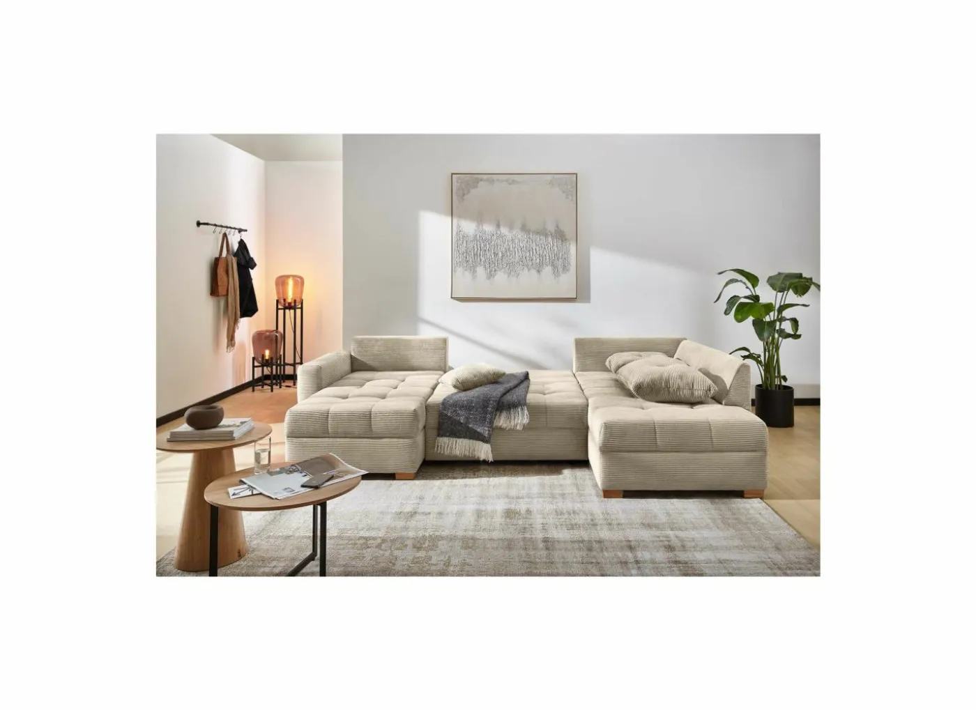 Hoeksalon Abby 311x170cm – stof – beige met bedfunctie