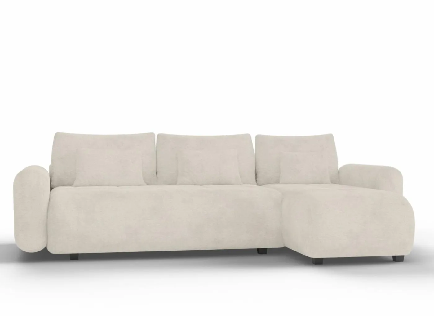 Deze hoeksalon combineert een strak ontwerp met slimme functionaliteit. De longchair rechts is 99 cm breed en biedt comfortabele zit- en ligruimte zonder te veel plaats in te nemen. De zachte bekleding in beige stof voelt aangenaam aan en is ook verkrijgbaar in andere kleuren. Dankzij de 3 rugkussens en 3 sierkussens zit u altijd comfortabel. De afgeronde hoeken geven het geheel een zachte, moderne uitstraling.