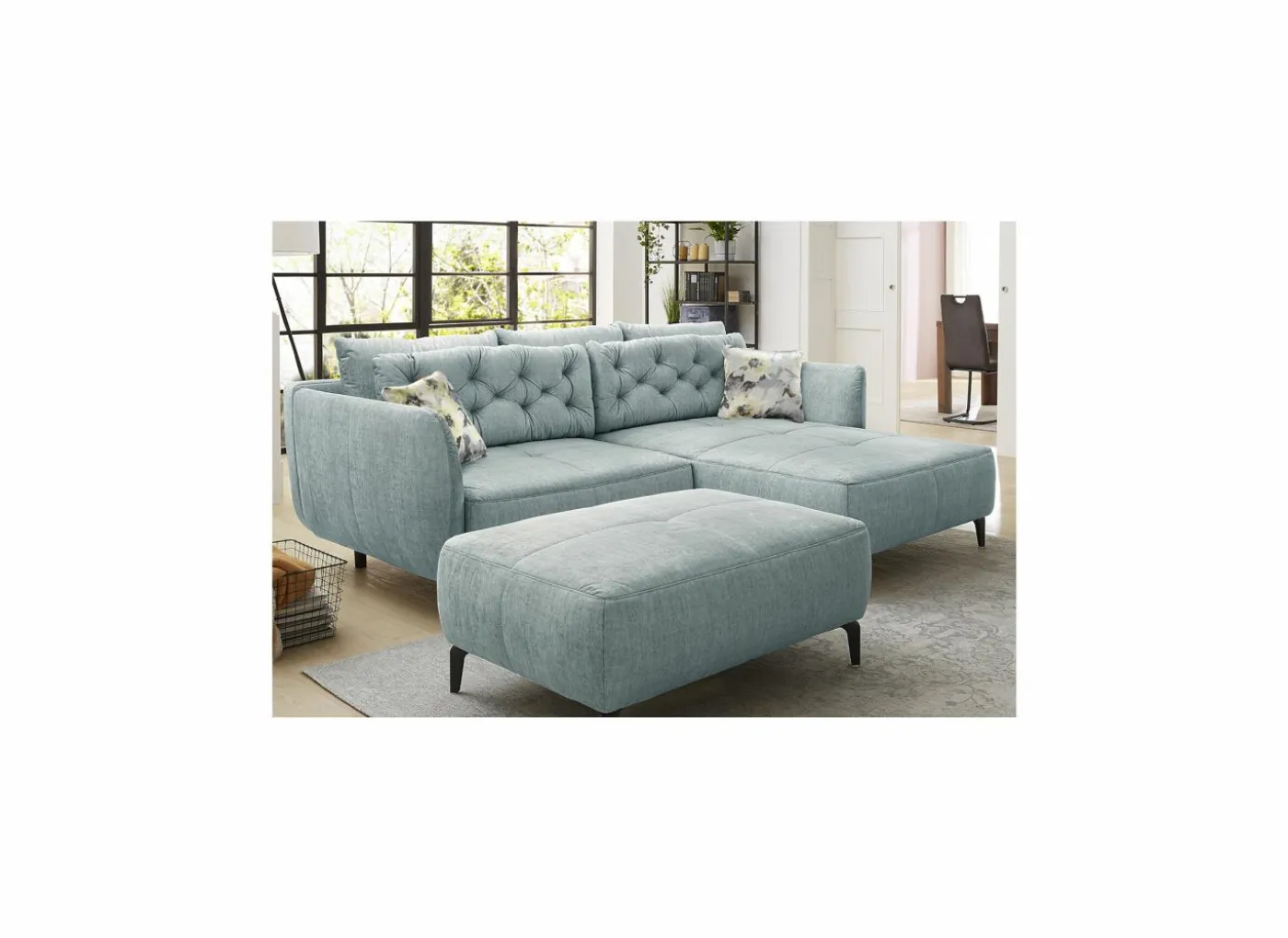 De voetenbank is niet inbegrepen bij het Saulo hoeksalon, wel apart verkrijgbaar.