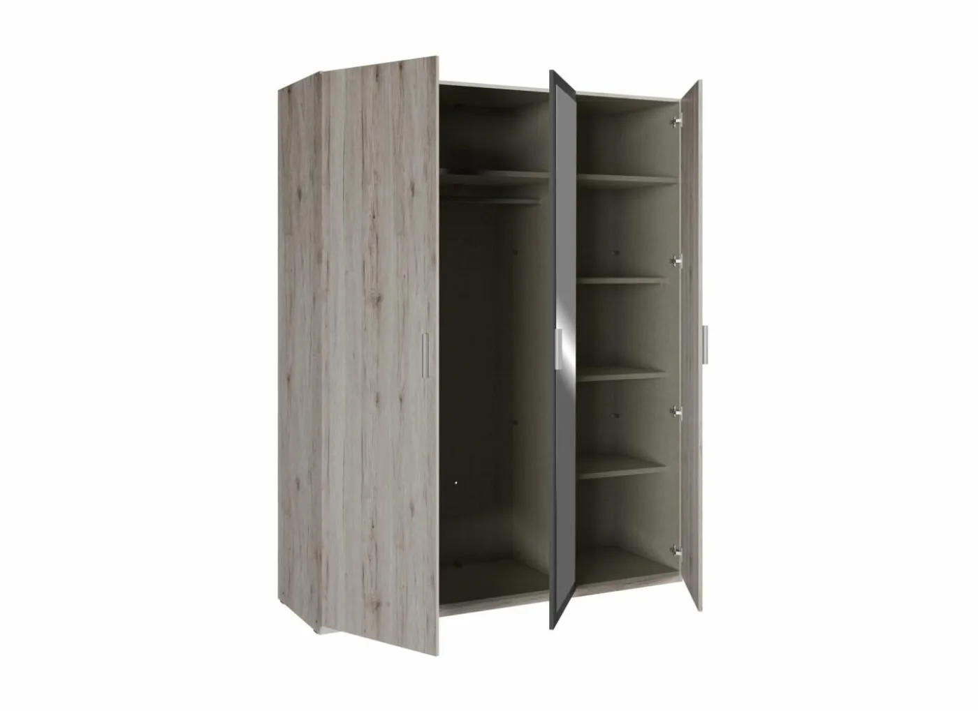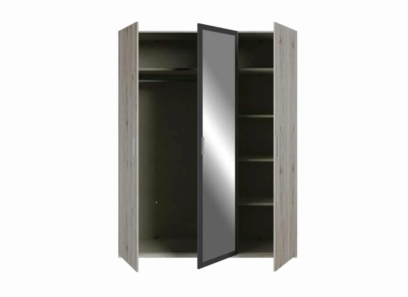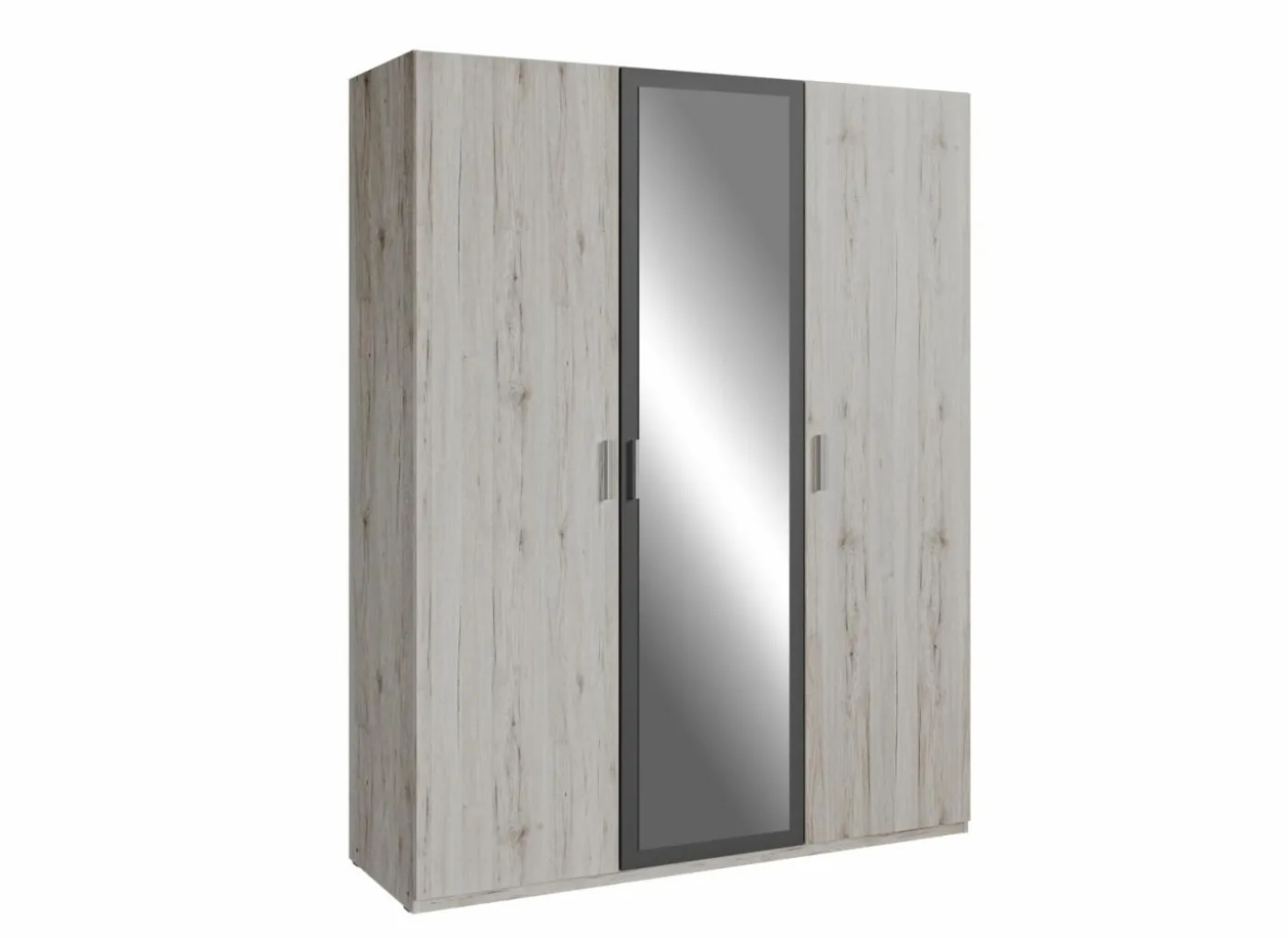 Deze Adria kast biedt een perfecte balans tussen functionaliteit en stijl. Met vier deuren, waarvan twee voorzien van spiegels, combineert deze kast opbergruimte met een ruimtelijk effect in de kamer. De binnenkant is praktisch ingedeeld: een hanggedeelte aan de ene kant en ruime legplanken aan de andere, zodat u uw kleding en accessoires netjes kunt organiseren. De zand eiken afwerking in combinatie met wolframgrijs geeft een moderne en tijdloze uitstraling. Dankzij de stevige constructie en hoogwaardige materialen is deze kast ontworpen voor jarenlang gebruik. De montage is eenvoudig met de bijgeleverde instructies, zodat u snel kunt genieten van een opgeruimde en stijlvolle slaapkamer.