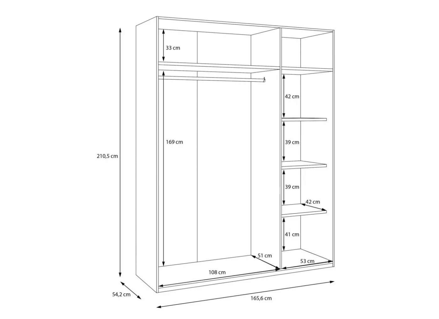✓ Ruime opbergmogelijkheden – combinatie van legplanken en een hanggedeelte