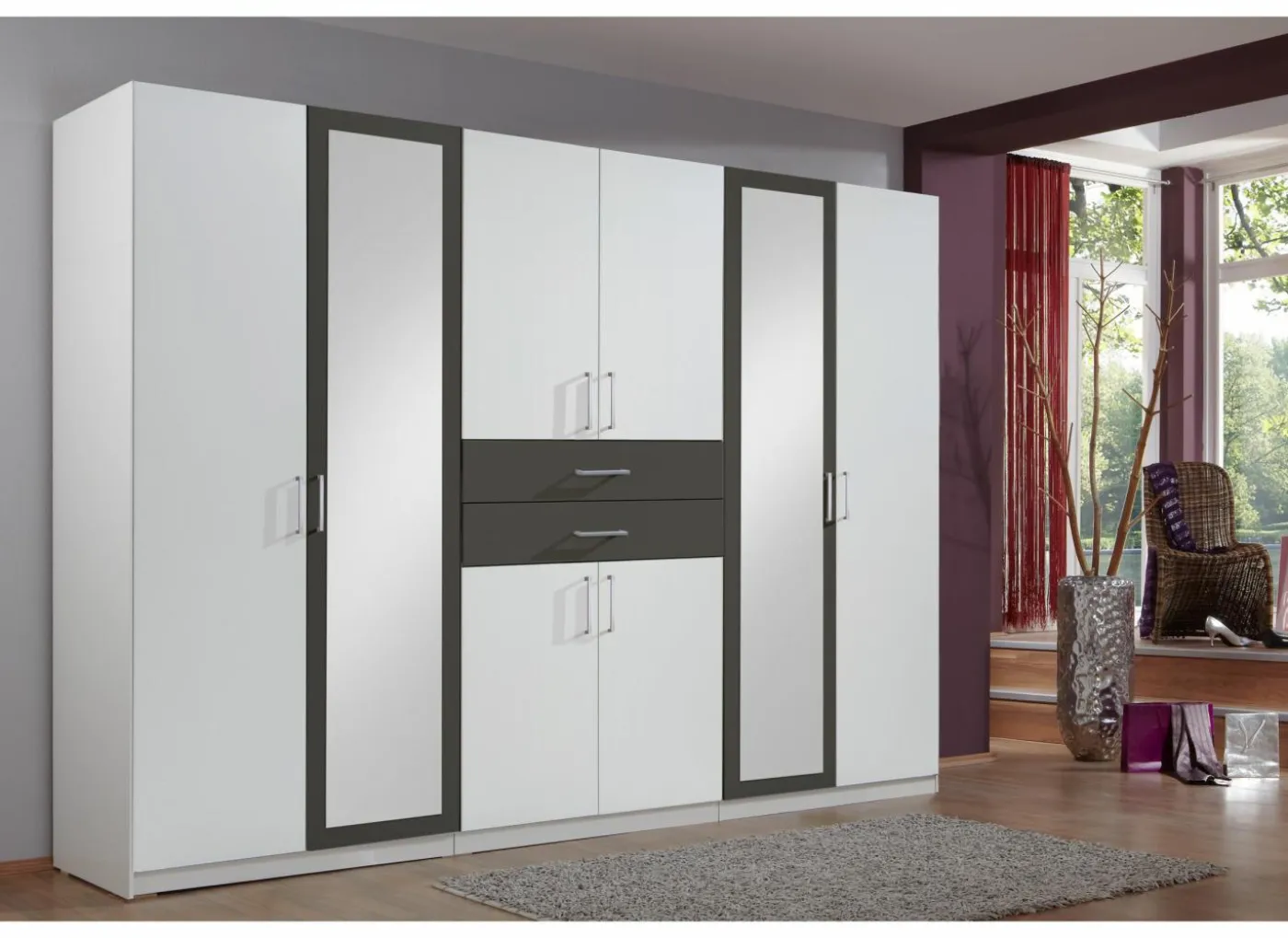 Slaapkamer Jabim met bed 180x200cm – kleerkast 279cm – commode 100cm