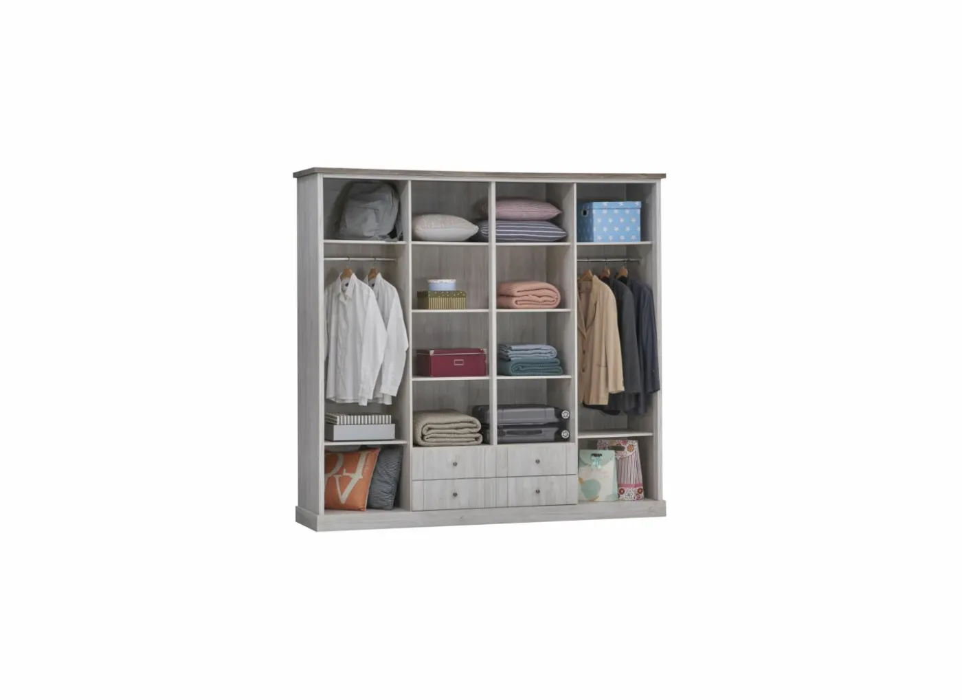 Slaapkamer Clara met bed 140x200cm – kleerkast 250cm – commode 90cm en 2 nachtkastjes