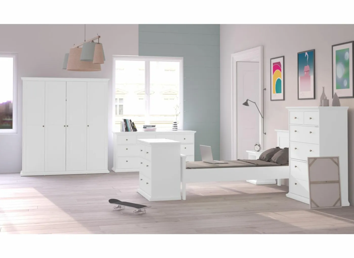 Slaapkamer Paris met bed 140cm – kleerkast 181cm – commode 97cm en 2 nachtkastjes
