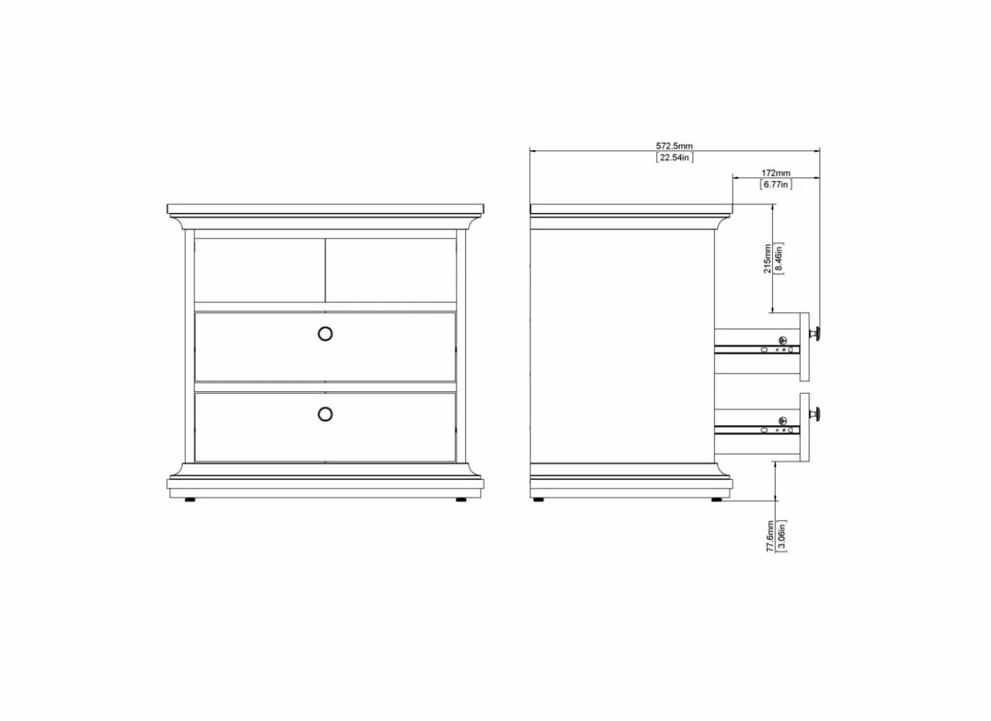 Slaapkamer Paris met bed 140cm – kleerkast 181cm – commode 97cm en 2 nachtkastjes