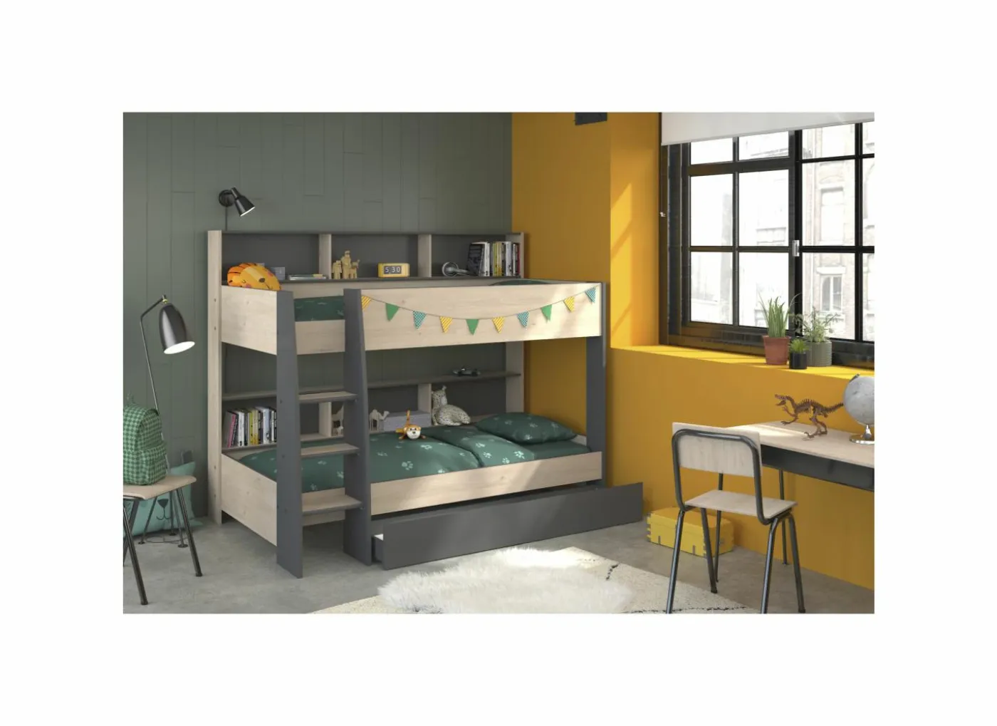 De onderste bedlade is niet inbegrepen maar kan apart bijbesteld worden (gelieve ons hiervoor te contacteren).