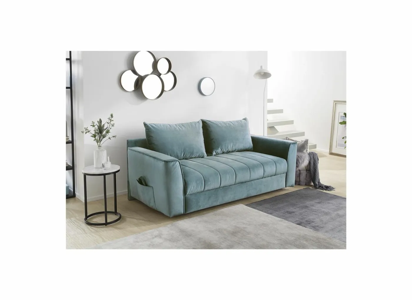 De geïntegreerde bedlade biedt voldoende opbergruimte.De twee rugkussens zijn inbegrepen.